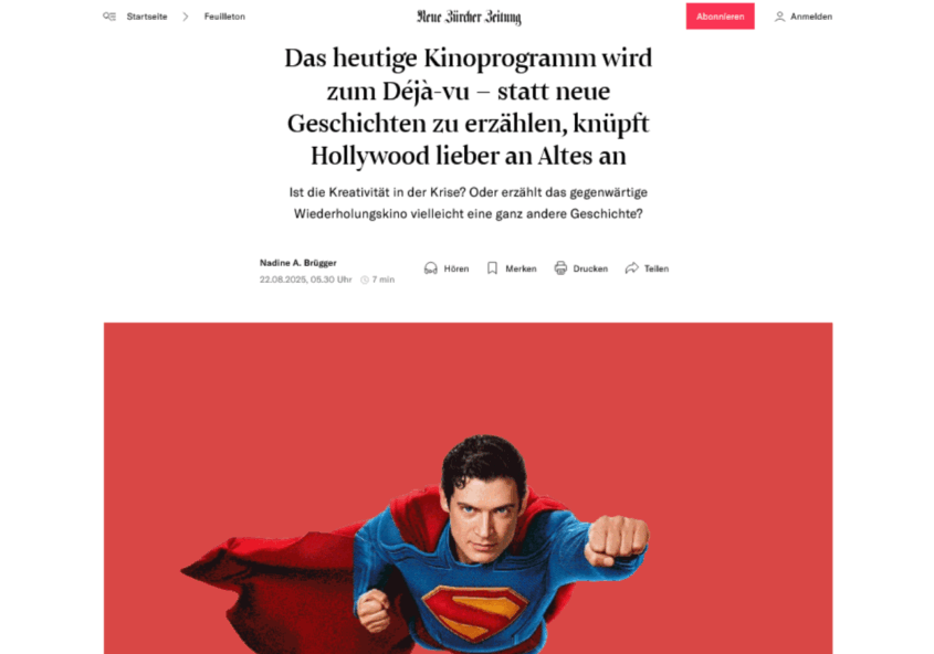 NZZ-Interview zum „Déjà-vu“ im heutigen Kinoprogramm