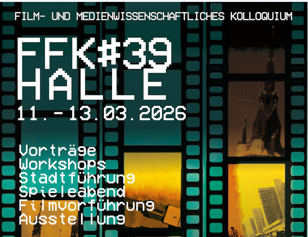 FFK#39 is a colloquium on film and media studies that took place this year at Martin Luther University Halle-Wittenberg. The conference ran from March 11 to 13, 2026, and offered a wide variety of talks from the field. You can find more Information on the Colloquium and the complete program here.