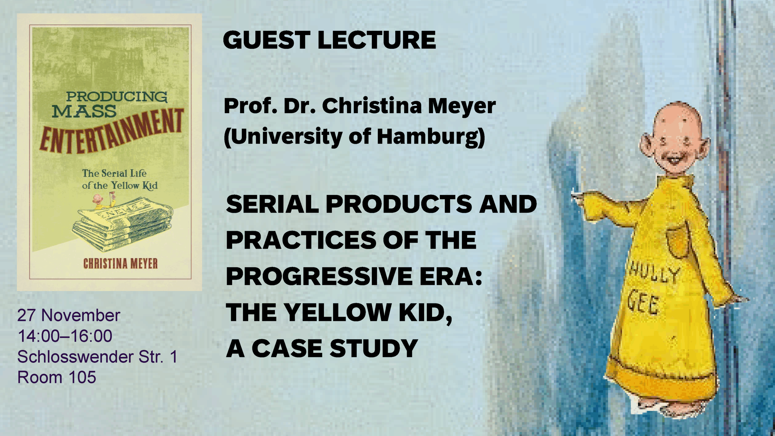Am 27. November war Prof. Dr. Christina Meyer zu Gast in Kathleens Seminar „Seriality and Popular Culture”. Sie hielt einen Gastvortrag zum Thema „Serial Products and Practices of the Progressive Era: The Yellow Kid, A Case Study”, in dem sie Einblicke in Zeitungscomics und The Yellow Kid, eine der ersten wiederkehrenden Comicfiguren, gab.