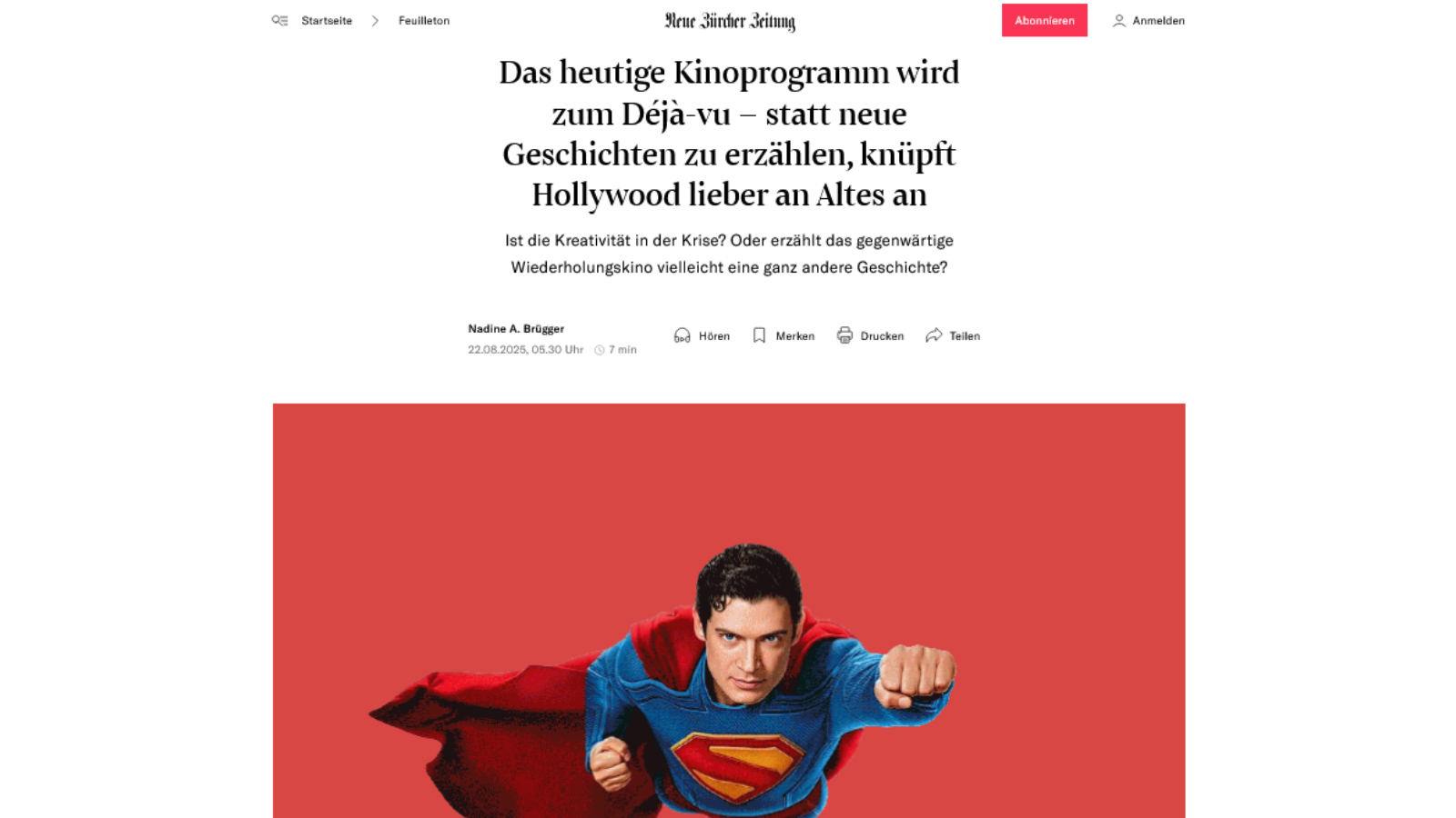NZZ-Interview zum "Déjà-vu" im heutigen Kinoprogramm